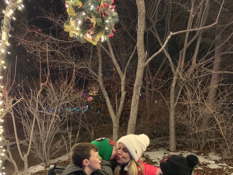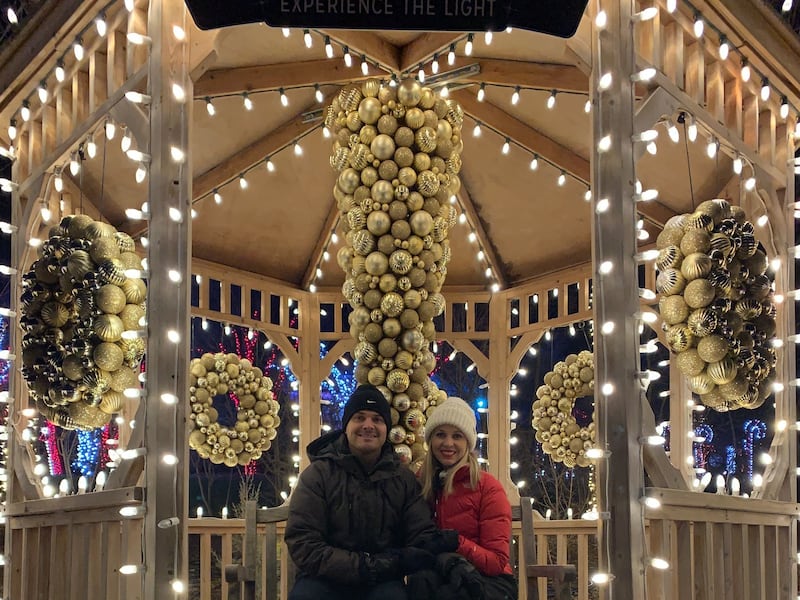 I was walking down the path taking in the stunning lights, amazing smells and beautiful music, only occasionally yelling at my boys to stop taking off their gloves and hats (they insisted they were “so hot” in the 30-degree weather), when we came upon a beautiful gazebo decorated in white twinkle lights and lavish gold ornaments that hung from the roof in a waterfall fashion.