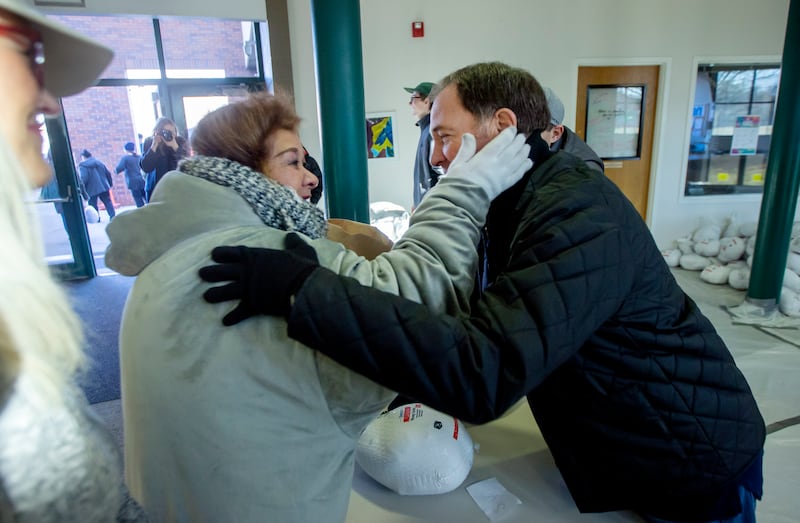 Janel Trapp also brought her kids to volunteer, where they registered food recipients as they entered the school.