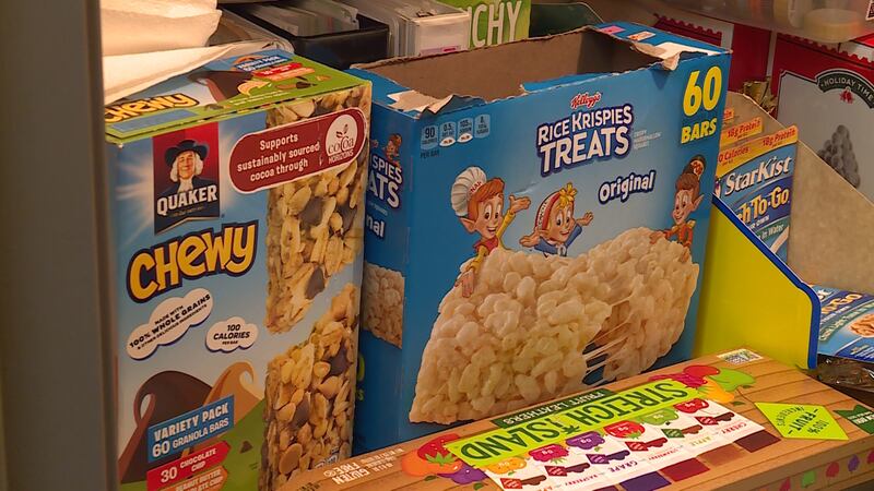 "It kind of just used to be centered here," she said, gesturing to her closet. "But since Gib's Kids has helped raise so much money, there are pantries throughout our school."