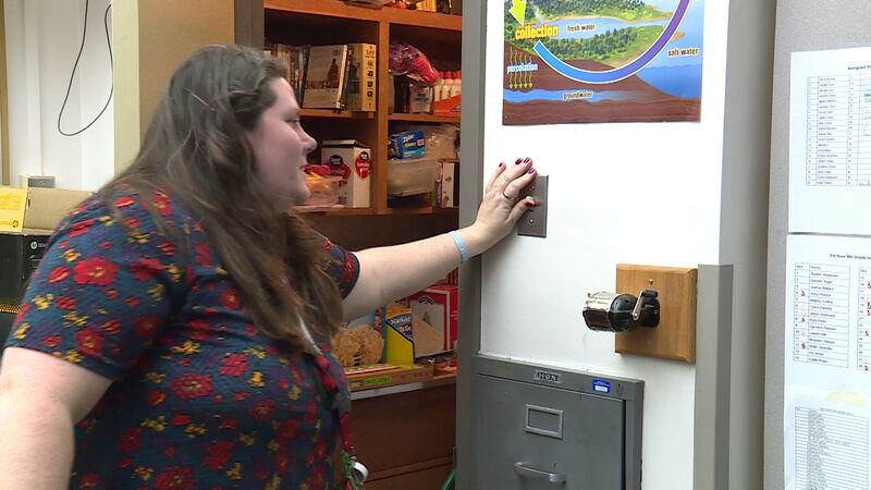 Now, part of her classroom has transformed. She raises money for food through a charity she calls "Gib's Kids." What used to be a closet for supplies in the corner of her classroom has been transformed into the in-school food pantry. Right next to it is a file cabinet stocked with snacks and meals — open to anyone, no questions asked.