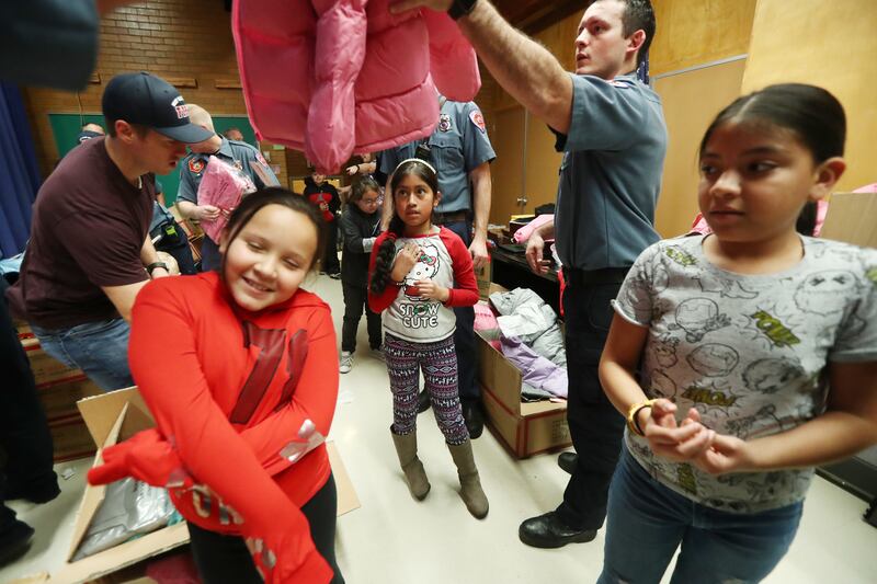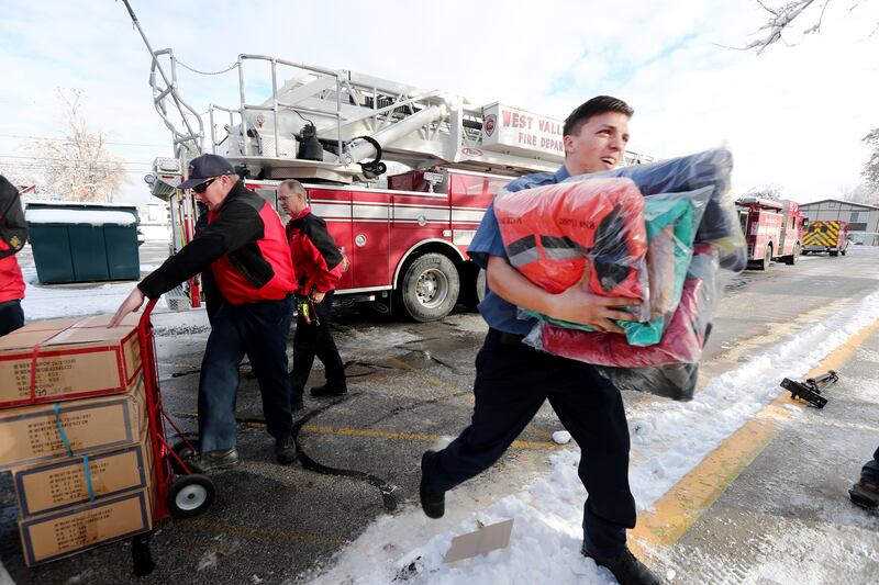 West Valley City firefighters gave out 140 coats Monday, and even went out to buy a few more for kids whose sizes were not available.