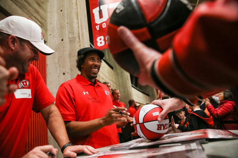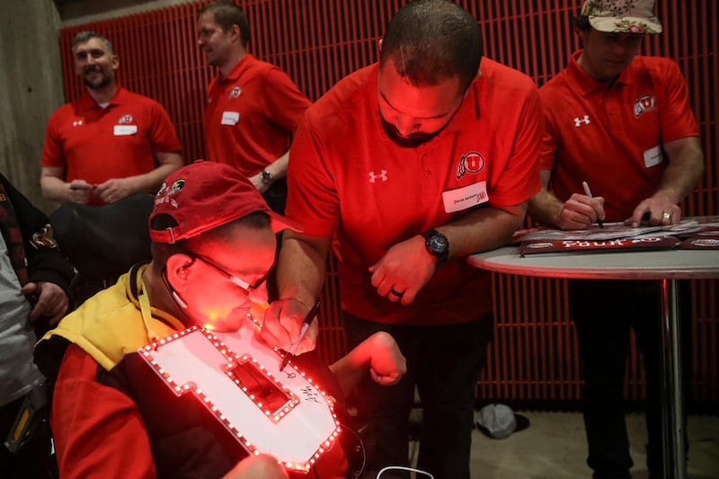 SALT LAKE CITY — Nearly all the members of the University of Utah’s 1998 national runners-up squad were present at the Utes’ contest against Cal. The former players signed autographs and took photos with fans before the game and were introduced at halftime where they received a commemorative customized sneaker.