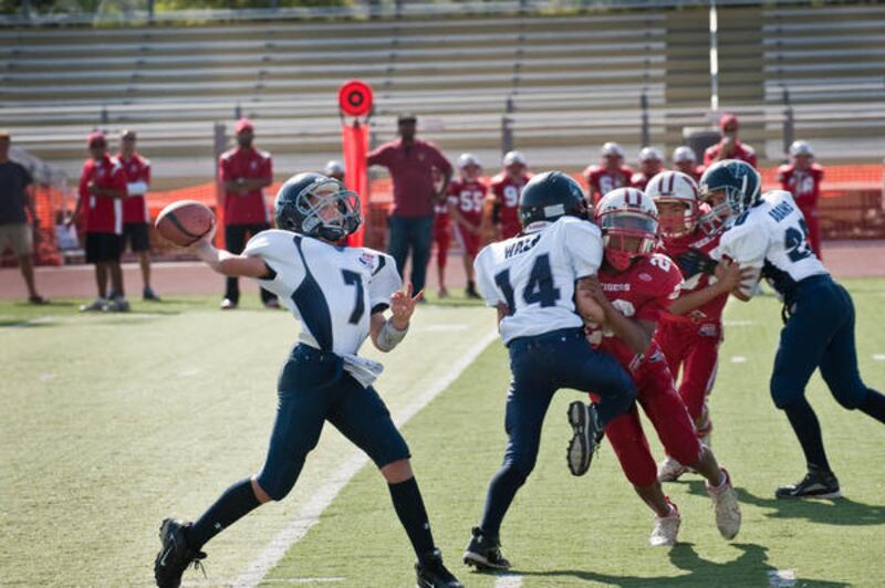Jack Tuttle was initially pegged as an offensive lineman because of his height. But he always wanted to throw the ball. He's pictured here as the quarterback of his Pop Warner team at age 9. | Courtesy Tuttle family