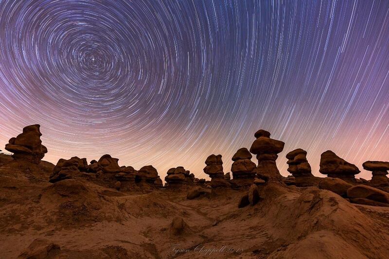 A spot where I often camped in the 1980s, Buckhorn Wash in the San Rafael Swell, was the subject of one of his images showing off individual stars in a shorter exposure.