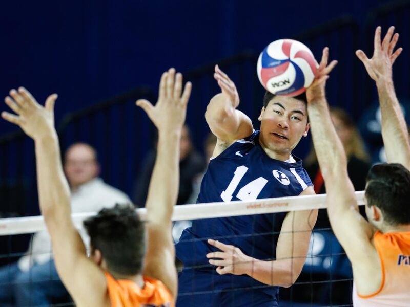 “We like to make it interesting, I guess. It definitely was,” BYU coach Shawn Olmstead said. “I’m proud of the guys for sticking to it. Going down two sets, that’s not the most ideal place to be in a volleyball match, but they were able to rebound and just play a lot better than they did in the first two sets.”