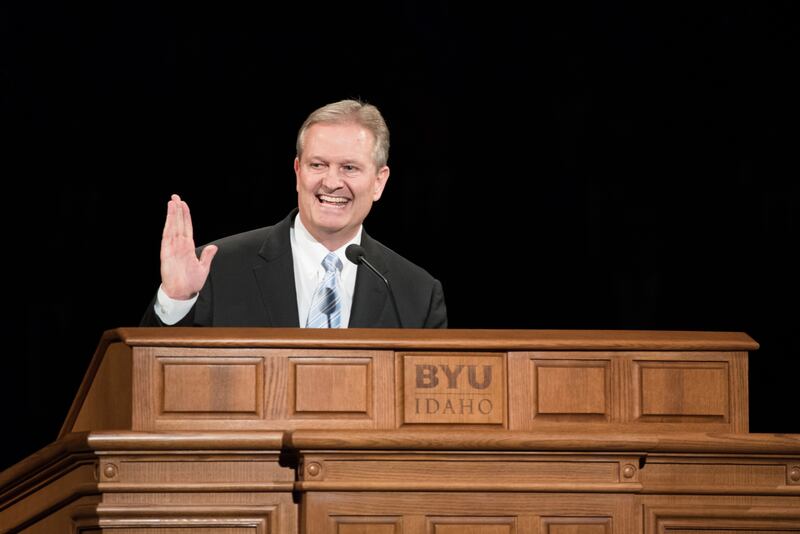 Speaking in the BYU-Idaho Center during the university’s weekly devotional and drawing from the example of the sons of Mosiah in the Book of Mormon, Elder Nattress shared three things everyone should do each day to attain spiritual success and remain on the covenant path. “Read the scriptures. I would recommend, specifically, read the Book of Mormon,” he said. “Pray. Every day. And find someone to serve. Make a positive difference in someone else’s life.”