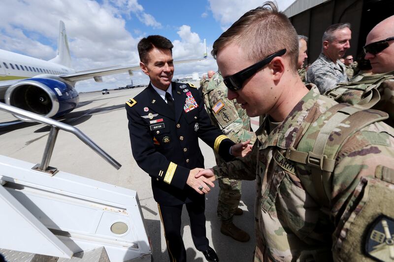 The deploying National Guard members departed on a chartered flight to Fort Bliss, Texas, for additional training prior to deploying to the Middle East.