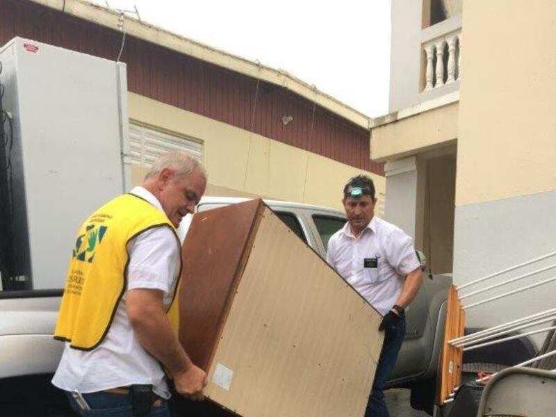 Away from Puerto Rico for just shy of a week, the Smarts returned to join senior missionaries Elder Mark Maxfield and Sister Lynn Maxfield of Salt Lake City, who had stayed behind to clean out missionary apartments and empty long-since-powerless refrigerators. Salvageable personal belongings were collected and stacked in the mission offices.