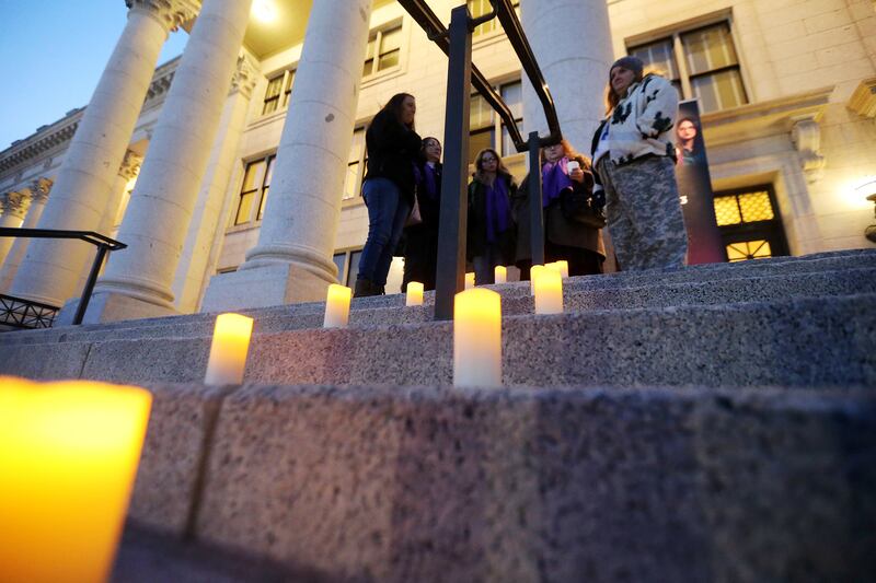 SALT LAKE CITY — About 30 advocates gathered on the steps of the Utah Capitol Wednesday evening at a somber vigil honoring more than three dozen people killed in cases of domestic violence last year.
