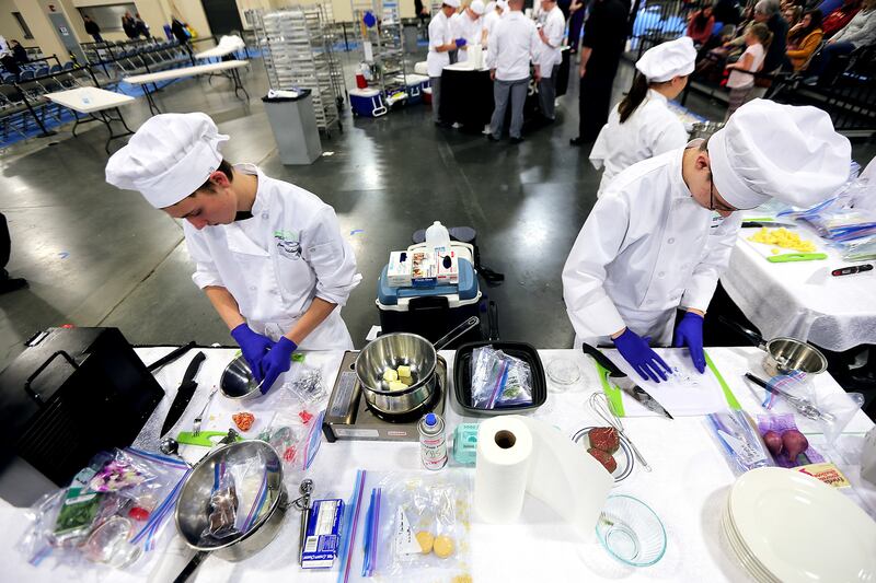 SANDY — Fourteen teams composed of teen chefs faced off in the culinary section of the annual Utah ProStart State Championship in Sandy on Tuesday. Run by the Utah Restaurant Association (URA), the competition also hosted industry-leading chefs, food tasters and restaurateurs.