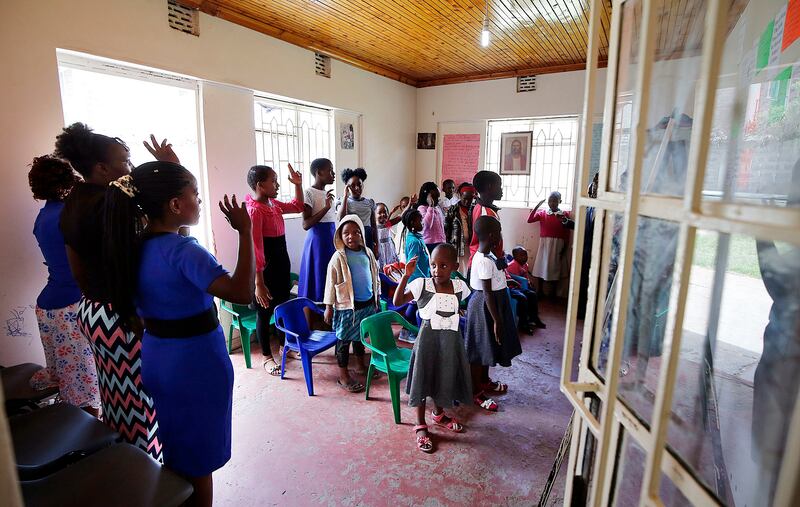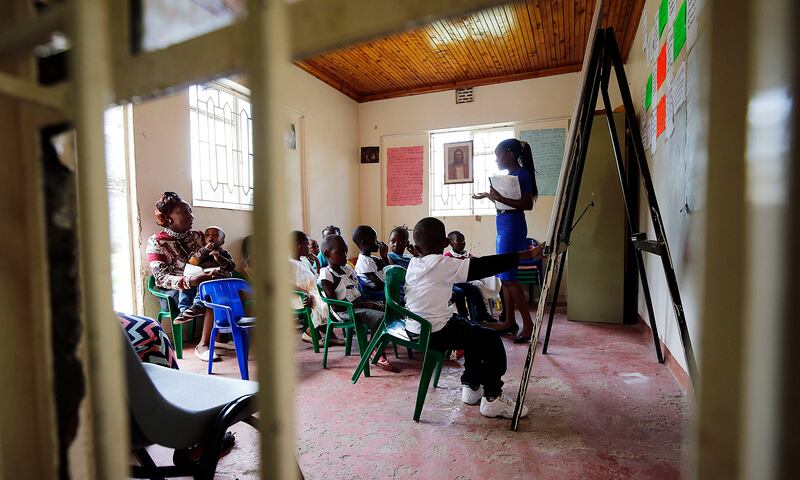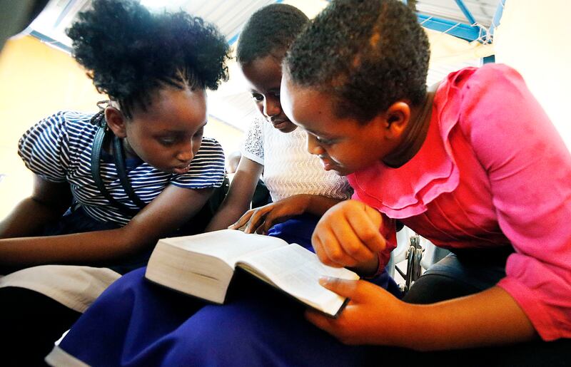 The church operates in English, widely used in education, government and business. Kasue and his wife, Mercy Kaleso, and everyone else who participated in church services on Sunday, spoke British-accented English. Still, Swahili often filled the stone hallways of the classroom building adjacent to the tent chapel. Especially among the young children who haven't started school or still are in the early grades and lack confidence.