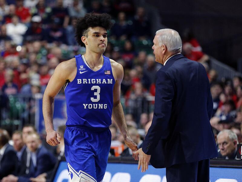 A year ago, star forward Eric Mika declared for the draft. He was not drafted but is currently playing professionally in Italy, where he served an LDS Church mission.