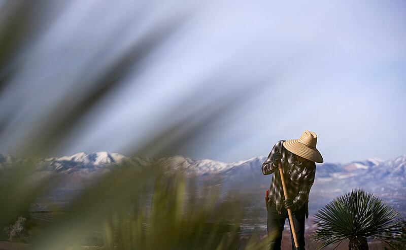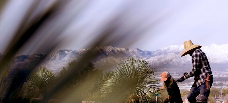 Horticulturist Fritz Kollmann plants a beaked yucca in Red Butte Garden's Water Conservation Garden in Salt Lake City on Wednesday.