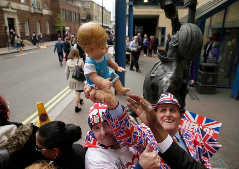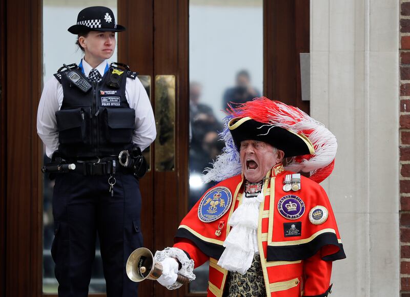 Tony Appleton, a town crier from southeast England, showed up in full regalia to declare the newborn prince's birth outside the hospital. The words "It's a boy" flashed in lights around the top of London's BT Tower, which can be seen for miles around.