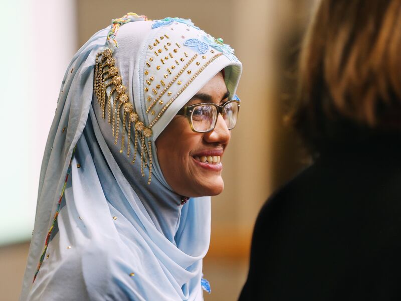 Rashidah Munir, an eighth grader at Granite Park Junior High, said after the event that she plans to be a fashion designer or a doctor — jobs she couldn't have gotten in Malaysia, where her family first moved after leaving Myanmar.