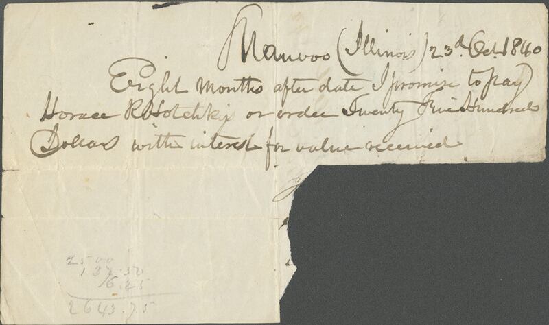 While the apostles and other missionaries were doing missionary work in England, documents in "Vol. 7" show how their families suffered in extreme poverty. In one example, Joseph Smith asks storekeeper Newel K. Whitney to give Brigham Young's wife, Mary Ann Angell Young, "anything she wants," including a shawl, a pair of shoes and nutmeg, a total cost of $3.10, Godfrey said.