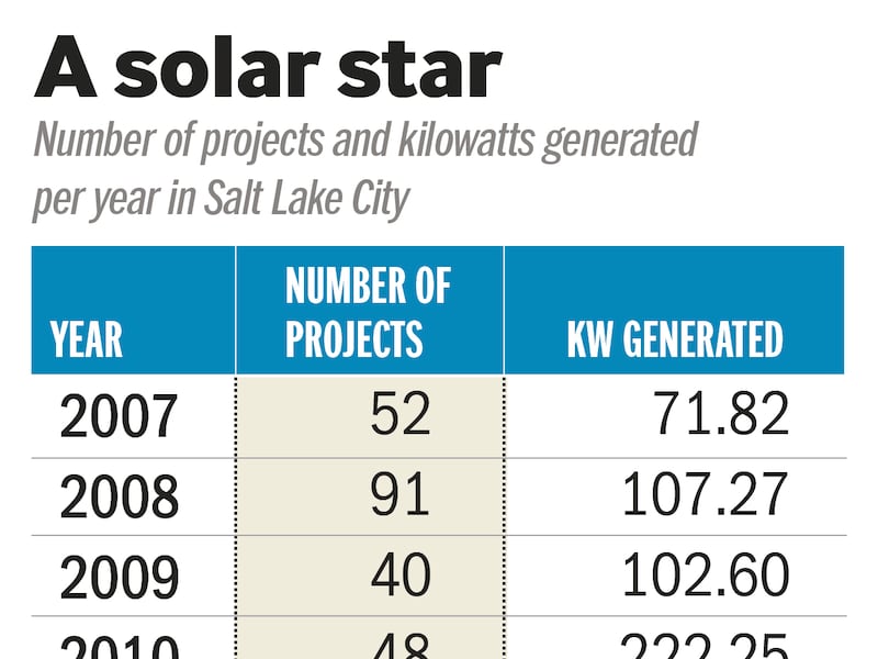 SALT LAKE CITY — A national environment organization says Salt Lake City is a rising star in solar energy development, as Utah's capital city has seen the number of completed projects grow from dozens in 2007 to hundreds in 2017.