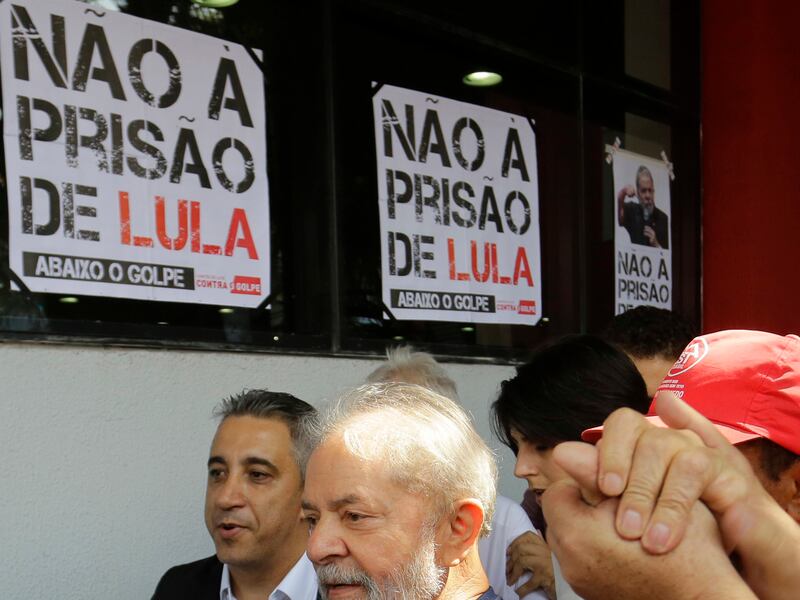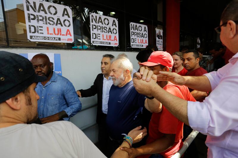 SAO BERNARDO DO CAMPO, Brazil (AP) — Former Brazilian President Luiz Inacio Lula da Silva told thousands of supporters Saturday that he would turn himself in to police, but also maintained his innocence and argued his corruption conviction was simply a way for enemies to make sure he doesn't run — and possibly win — re-election in October.
