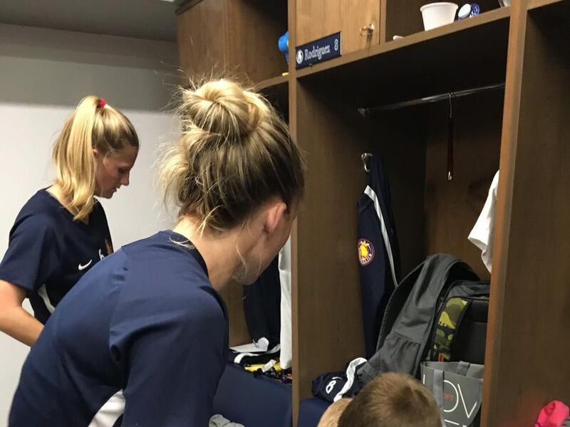 SANDY — The sweat from an intense morning practice still on her brow, Amy Rodriguez walks into the Utah Royals FC locker room to a scene that looks more like the playroom at an upscale day-care facility than the locker room of a professional sports team.