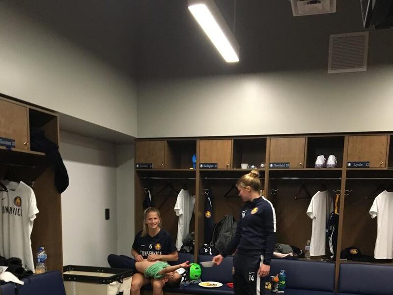 She laughs, but she is serious about how it actually helps her focus in training and during games. She is more deliberate about how and when she trains, and soccer, like most physical activity, actually helps her deal with the stress that accompanies being a parent in any setting.