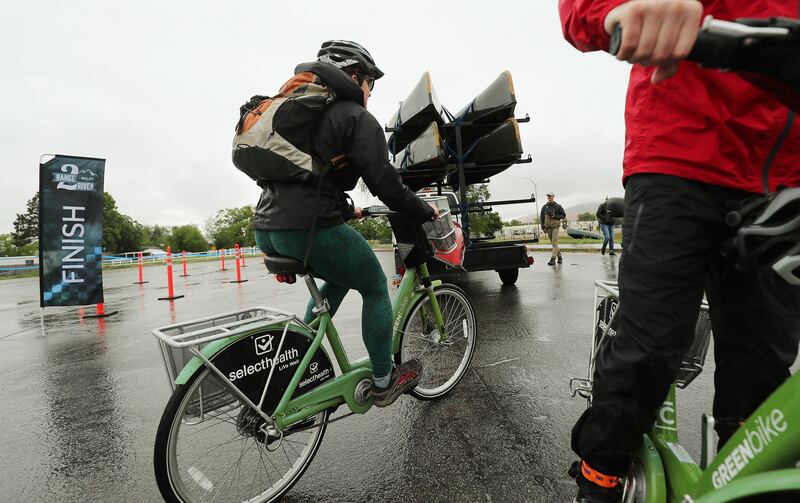 SALT LAKE CITY — On a soggy Saturday morning, 30 hardy people took to bicycles, jogging and boating the Jordan River to raise money to bring sunlight to a section of City Creek that flows underground.