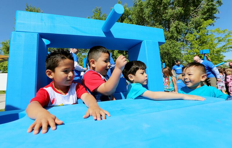 WEST VALLEY CITY — A sea of blue foam brightened the morning for children at Catherine C. Hoskins Head Start Preschool in West Valley City Monday.
