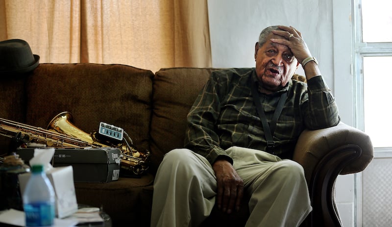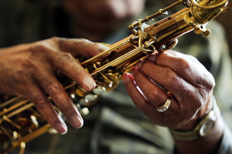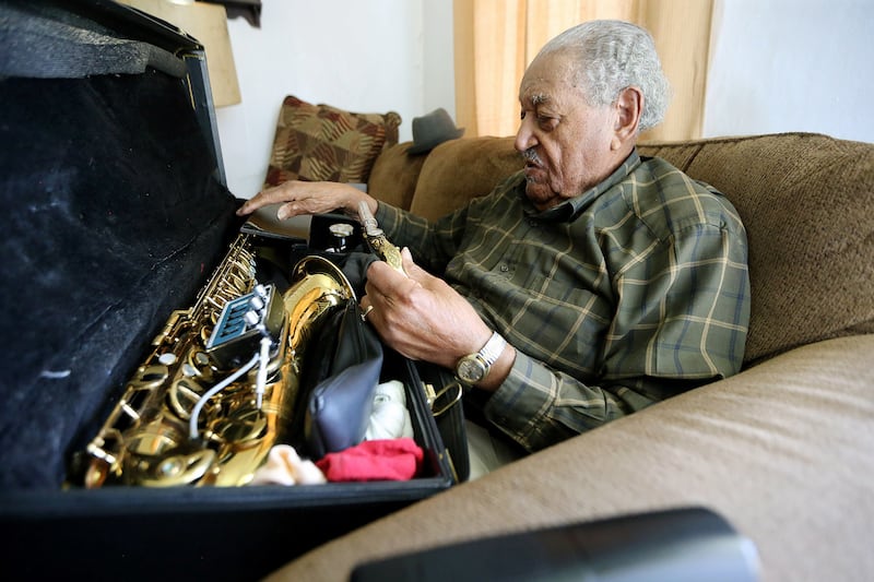 “He had it on the bed and I picked it up messing with it, and he came in and showed me how to run a C major scale. He put the arm around my neck, put the strap on and placed my fingers on the horn … and somehow or another that stuck,” he said. “From then on, I wanted to play the horn and I have been playing it now for about 84 years.”