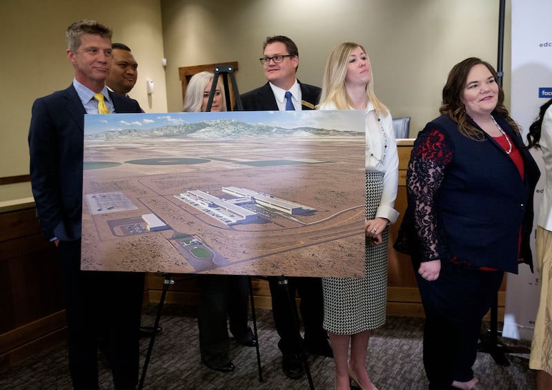 A bevy of state and local officials were on hand in Eagle Mountain for the announcement, including Gov. Gary Herbert, Congresswoman Mia Love, R-Utah, Utah House Speaker Greg Hughes, R-Draper, Senate President Wayne Niederhauser, R-Sandy, Governor's Office of Economic Development Executive Director Val Hale, Utah Attorney General Sean Reyes and others.