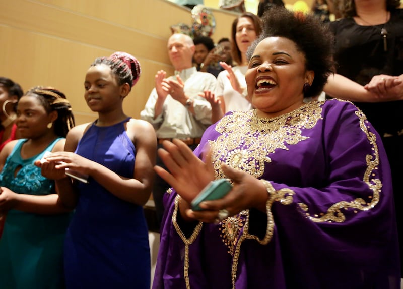 When the talent show was over, Kambere and a couple of classmates stayed afterward to fold up and roll away the lunch tables that served as seating for the audience.