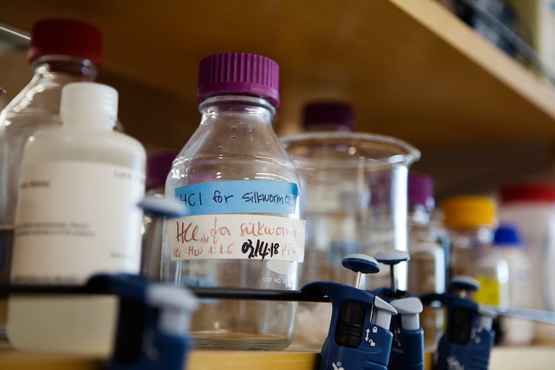 First is supplying the aforementioned synthetic spider silk made from transgenic bacteria and silkworms, two of four sources the lab uses for silk production, he explained.