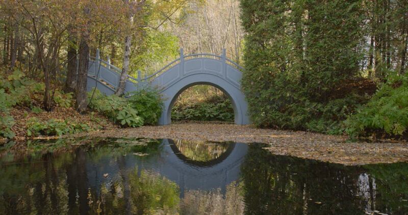 The garden is truly a long-term project, and “The Gardener” intercuts talking-head interview clips with extensive footage taken from around the garden — sections of the garden built around a Chinese Moon Bridge, a Japanese tea house, a ravine spanned by a “Temple of Doom”-style rope bridge and a “living room” built out of bushes trimmed to look like furniture.