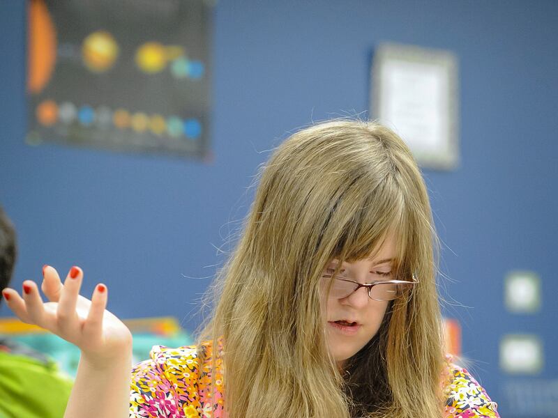 Eventually, Emily was moved to Beane's classroom, where she teaches "accommodate core" subjects to students with moderate disabilities. Beane's students need a little more guidance and assistance than they can receive in traditional classrooms. Emily also has taken mainstream classes in high school.