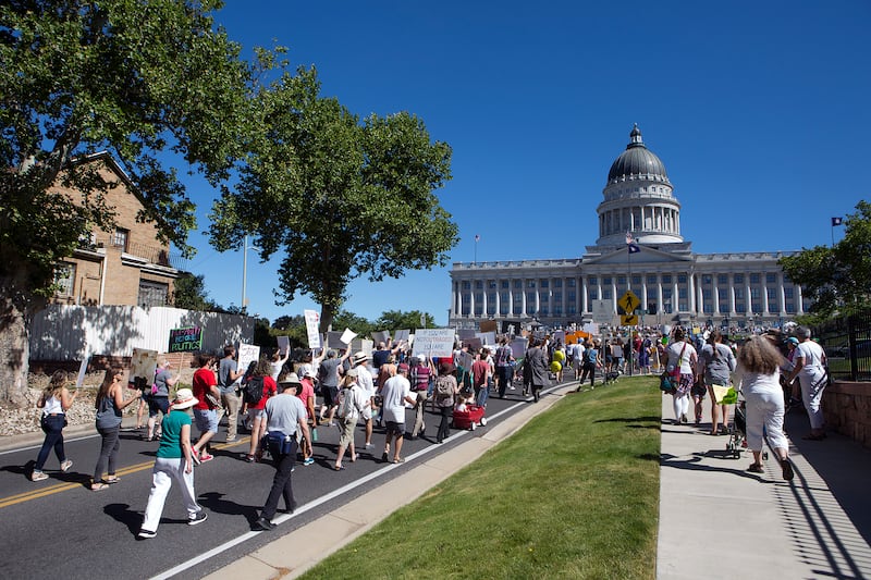 Signs and posters carried by marchers flashed contact information for Utah's elected delegation, and organizers urged rally participants to call and express their opinions.