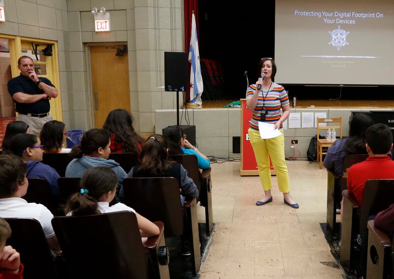 Nor should she, says a retired cybercrimes detective who spoke to her and other parents in early June at Nathan Hale Elementary School in Chicago.