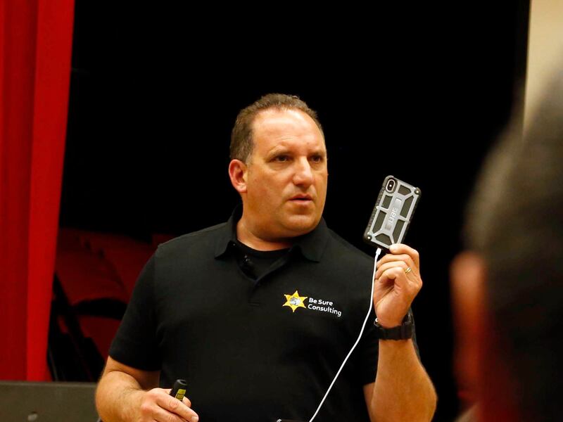 He often holds up a mobile phone and tells wide-eyed parents that giving a kid this "ominous device" — and allowing them to have it any time, including charging in their rooms at night — is like handing over the keys to a new Mercedes and saying, "Sweetheart you can go to Vegas. You can drive to Texas, Florida, New York, wherever you want to go."