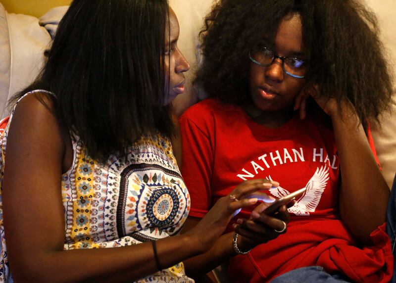 CHICAGO — Ayrial Miller is clearly annoyed. Her mother is sitting with her on the couch in their Chicago apartment, scrolling through the teen's contacts on social media.