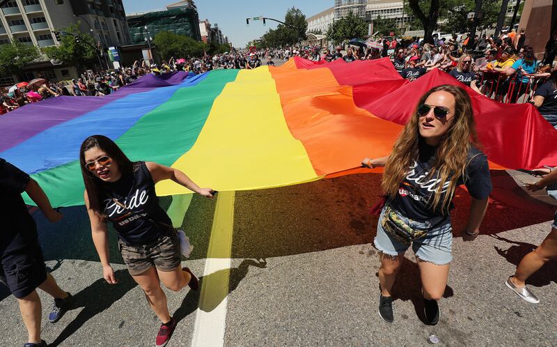 Utah Pride Festival estimated that 100,000 people turned out for the parade, which kicked off the final day of the 43rd annual event, a four-day celebration of the state's LGBT community.