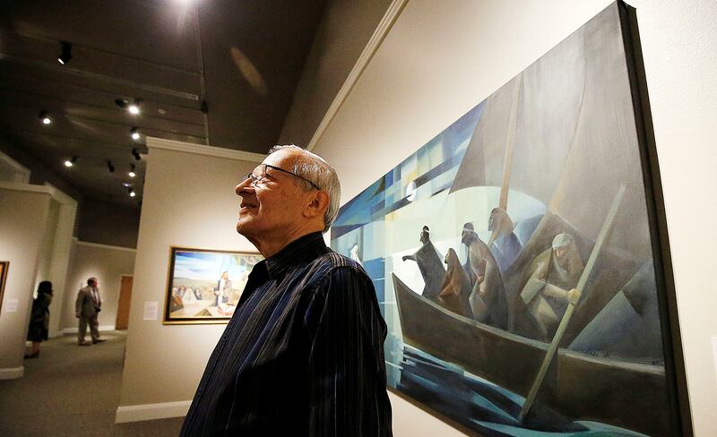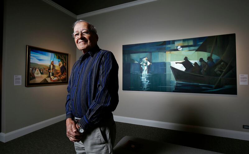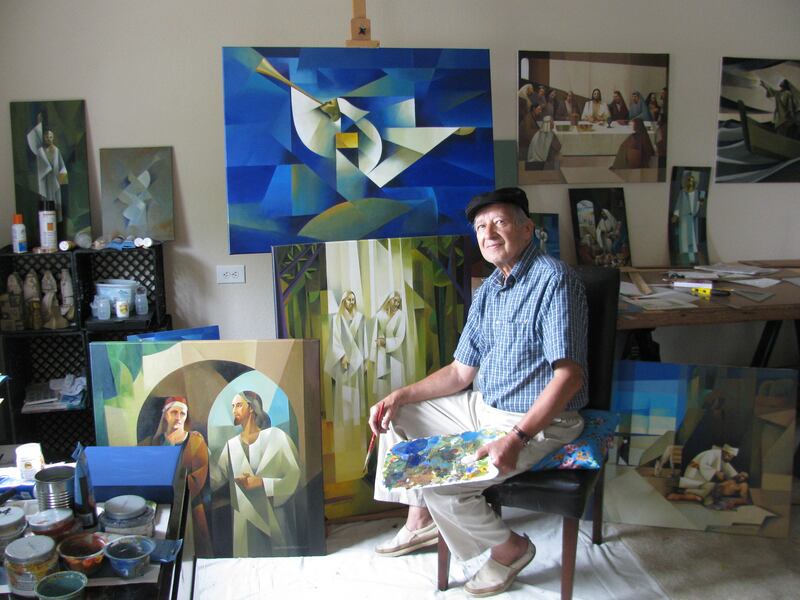 SALT LAKE CITY— After joining The Church of Jesus Christ of Latter-day Saints in 1962, Argentine artist Jorge Cocco Santangelo felt drawn to painting religious scenes, but initially, he stayed close to fairly traditional art styles. Soon, though, he said he was caught "between two worlds" — between the more conventional, classical style typically used in LDS Church art and more contemporary styles.