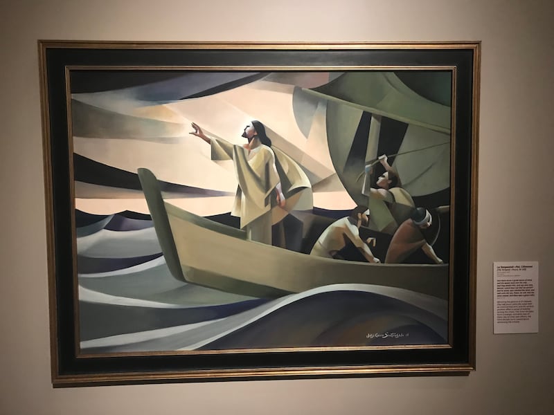 Closely related to Pablo Picasso's cubism, the term refers to painting religious art in a cubist style — "a language more (suited) to our times," Cocco said through a translator. While his subjects and stories are easy to identify, as in classical art, it is not hard to see cubism's geometric influence in the lines and plains of Cocco's artwork.