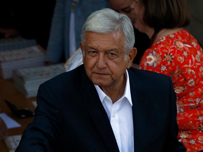 Front-running candidate Andres Manuel Lopez Obrador was one of the first lined up to vote at his polling place in Mexico City, and some of his supporters turned out early.