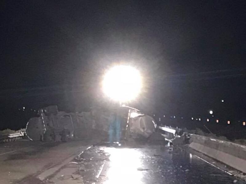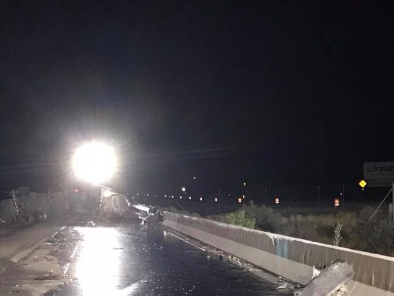 The crash happened about 9:40 p.m. just before the Carbonville exit, said Utah Highway Patrol Lt. Todd Royce. A semitrailer from Maverik hauling two tankers filled with oil crossed into oncoming traffic in a construction zone and hit a bridge.