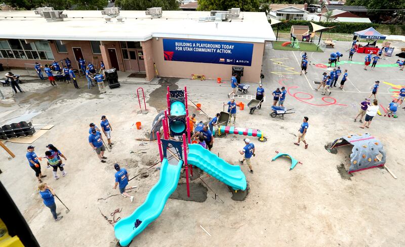 The massive effort was made possible by a collaboration between Utah Community Action and employees at Delta Air Lines, as well as the playground grant program, KaBOOM! based in Washington, D.C.