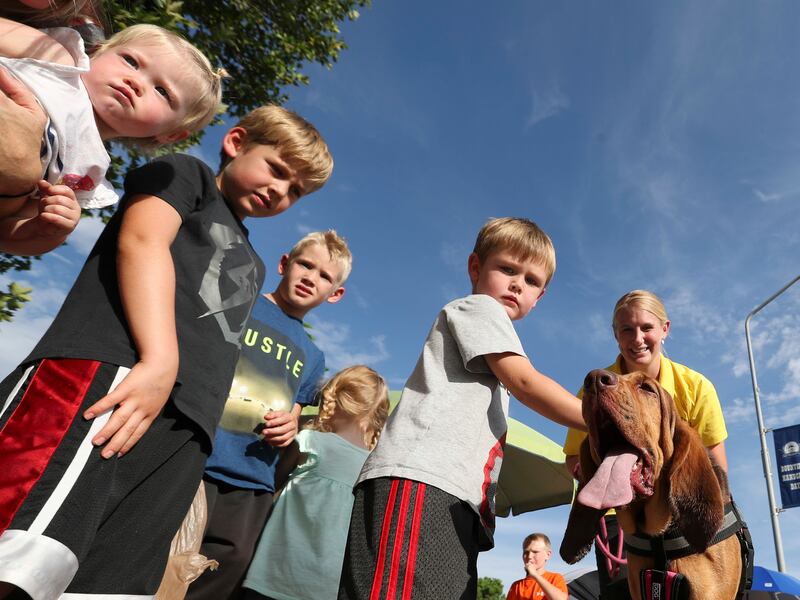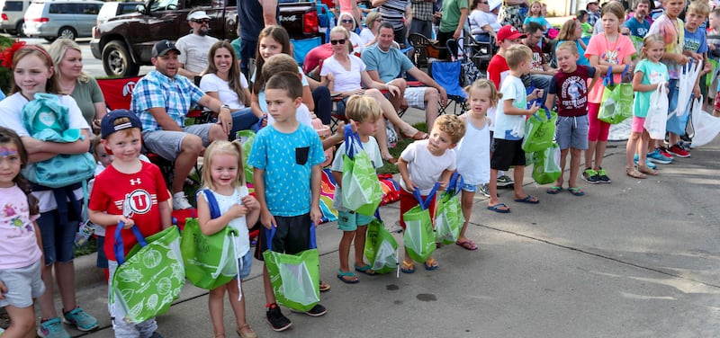 Elena Limon from the Cross E Ranch carries the American Flag during the 65th annual Handcart Days parade. The parade's 100 entries wound their way from 1500 South Main to 400 North, ending at 100 West in Bountiful. People also enjoyed pioneer games, a climbing wall, inflatables and train rides at the Bountiful City Park and got to meet mountain men in activities "designed to give children an idea as to how pioneer families lived," according to parade organizers. After the parade, Carmen Rasmusen Herbert performed a free concert in the park, followed by the Leaping LuLu Band, a neo-traditional Irish folk band, while people square danced.
