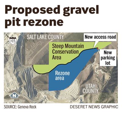Geneva is proposing to forego any mining at Steep Mountain and instead will establish a 78-acre conservation area with an easement granted to Draper or Salt Lake County, Kallas said.