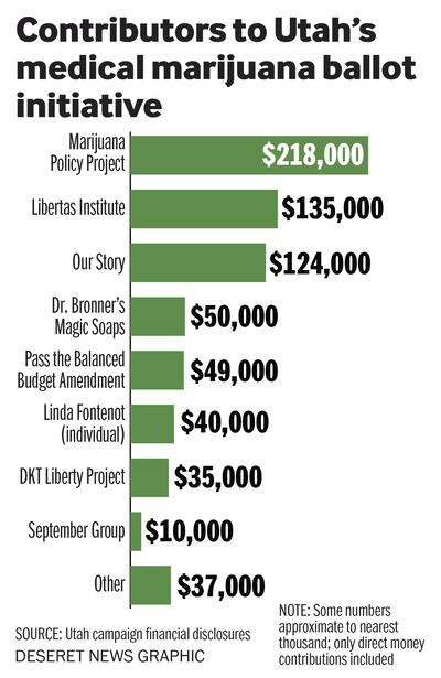 A Deseret News review of the ballot initiative's campaign finance records and interviews with donors found that 1) influential national lobbying group Marijuana Policy Project has had a major financial hand in supporting the signature push, 2) the same group played an important role in the initial drafting of the initiative, 3) the campaign has raised less than almost any other Utah initiative despite its popularity, and 4) the campaign has received hundreds of small donations.