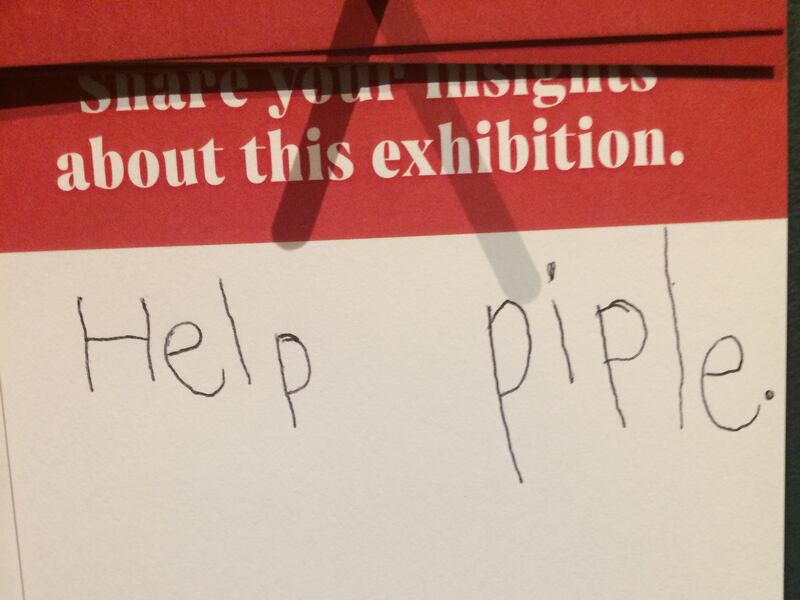 A general “share your insights about this exhibition” prompt appears to be the most popular, but many patrons have also chosen to answer the question, “How can you contribute to a safe and peaceful world?” The answers have so far been along the lines of, “I can be a better person,” “I can help people,” and so on.