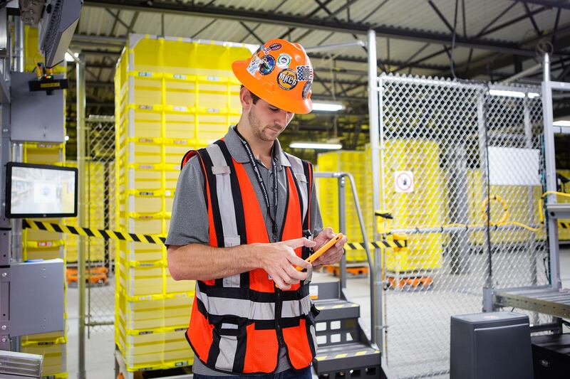 SALT LAKE CITY — With bright yellow paint, high ceilings and robots zipping across sprawling floors, Amazon's newest distribution center in Salt Lake City evokes a tech Wonka factory.