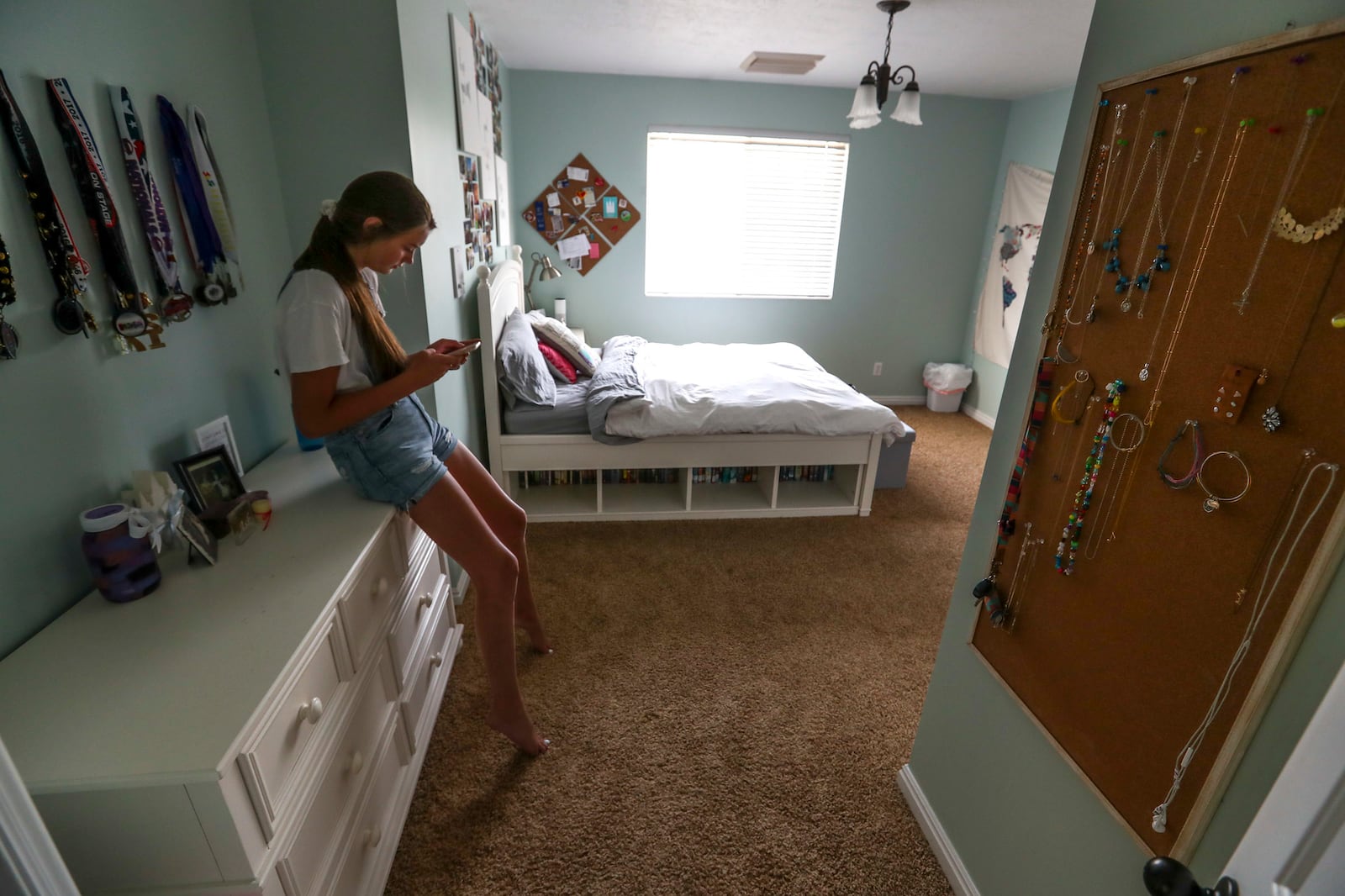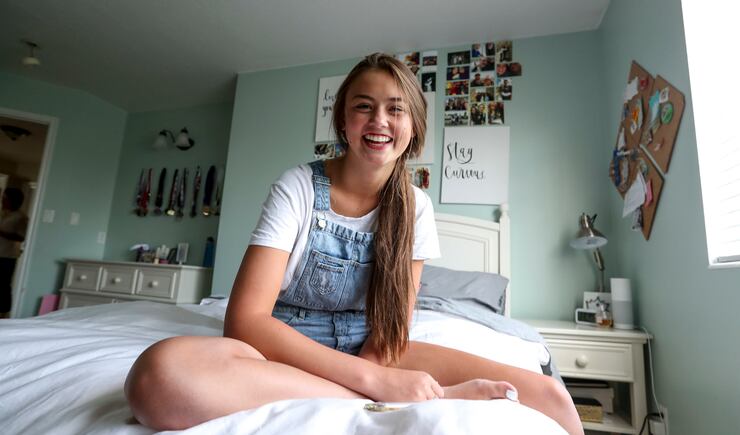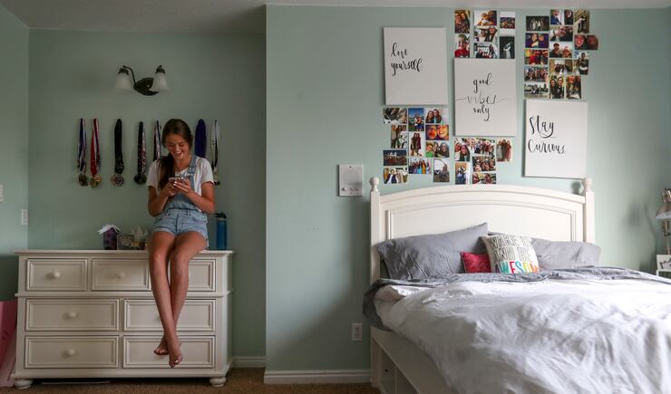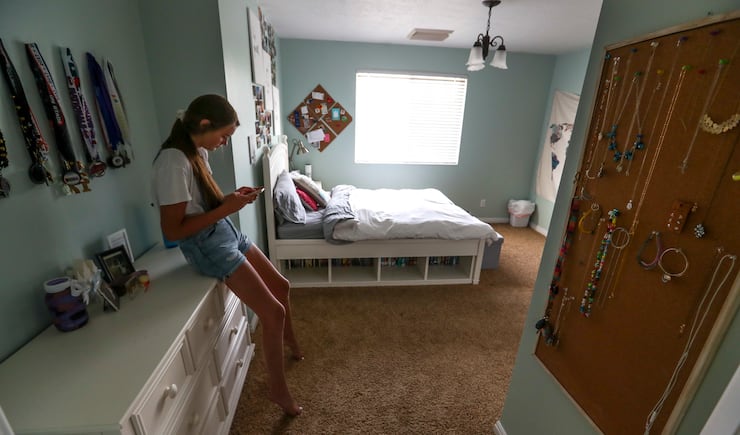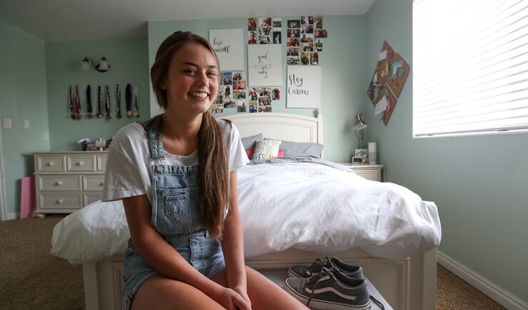During a recent visit to her South Jordan home, Katherine is draped on the couch, Snapchatting with friends while we talk.