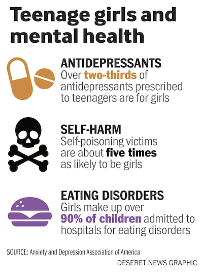 More than two-thirds of antidepressants prescribed for teens are for girls, and girls comprise more than 90 percent of hospital admissions for eating disorders, says the Anxiety and Depression Association of America.