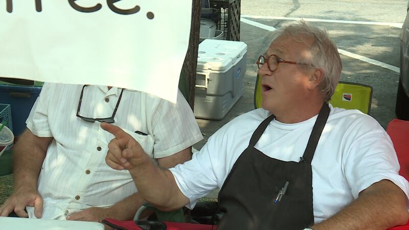 "We tell them we're not qualified to do anything," Caputo said, gesturing toward his banner. "Like it says, it's probably bad advice."